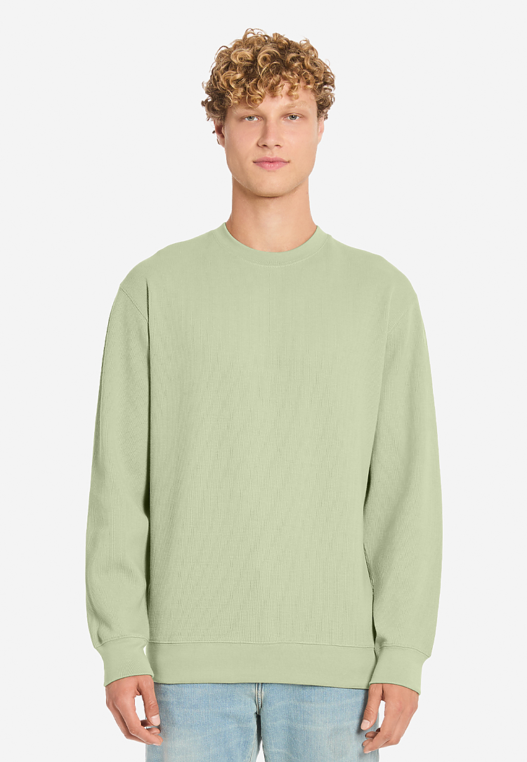 The yarn is composed of post-consumer waste, as well as scraps left over from the cutting stage of the manufacturing process.